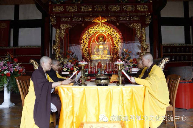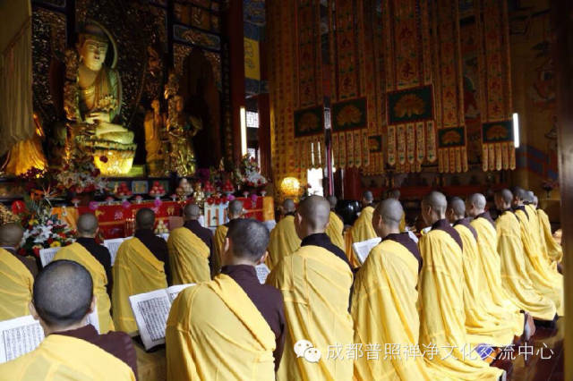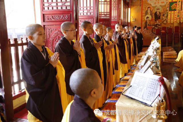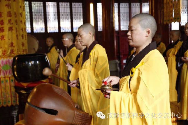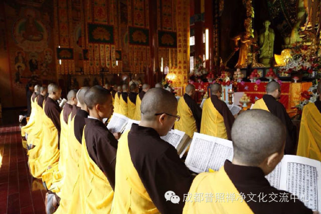 普照寺水陆法会外坛坛口分别为大雄宝殿之梁皇大坛、燃灯殿之楞严坛、蓥华殿之法华坛、药师殿之华严坛、地藏殿之诸经坛、禅堂之净土坛,共有来自川内寺院的七十余位比丘尼法师参与外坛诵经。自26日下午净坛仪式开始,外坛佛事已持续三天。各坛口法师讽诵经典,精进不懈,梵音缭绕,舒卷山林。