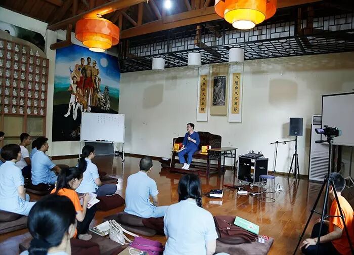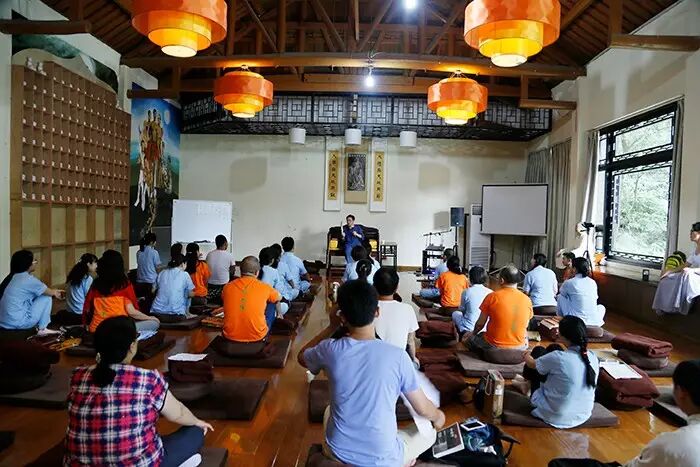 最后,李里先生向正在举办的普照寺2015国学禅修夏令营成人班进行简短而精要的讲课。李里先生就如何正确学习中国传统文化、国学文化、以及小孩应该如何学习国学等内容指出了细致而有层次性的方法和规划。