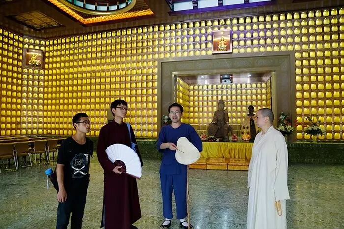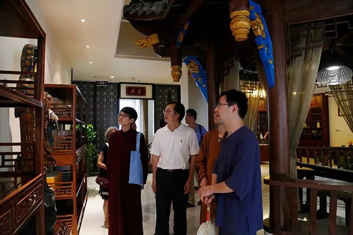 7月20日,“长衫先生”、著名国学学者李里造访普照文化中心和普照寺,传薪书院的一众老师和学生随行。上午,文化中心普谦法师带领长衫先生参观,介绍中心的创办、课程安排、文化弘扬等。