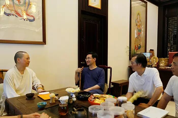 随后,果证法师向李里先生介绍创办书院的设想与理念,并希望能同李里先生一道用国学文化向世间众人传播智慧与快乐。