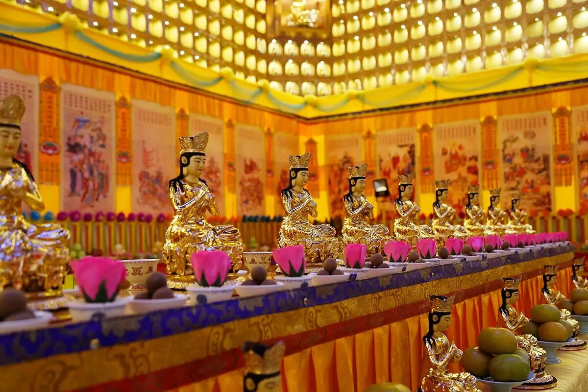 内坛以72幅水陆画交替连接庄严整个内坛道场,并设置几十尊佛像以护持道场,百果五香,鲜花供佛,上立牌位,下行恭敬,净土庄严,佛光普照。